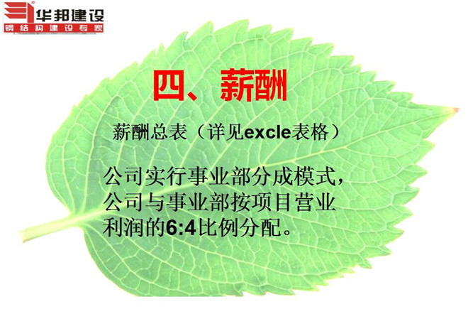 公司實行事業(yè)部分成模式,公司與事業(yè)部按項目營業(yè)利潤的6:4比例分配。